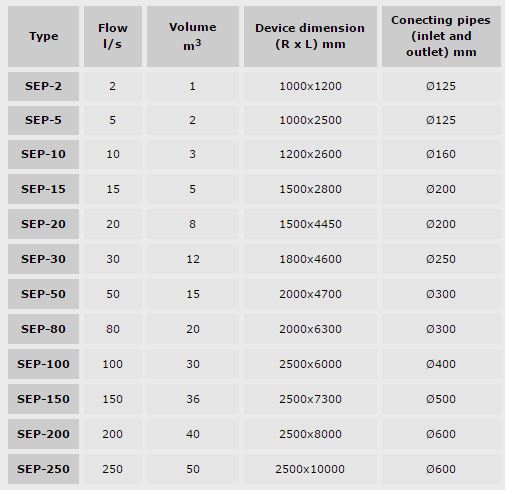 Oil and oil derivatives separators are used for purification of wastewater from rain drainage for all areas exposed to rainfall and with bigger quantity of residue, such as traffic routes, squares, parks, gas stations, car repair shops, garages, industrial plants, etc. Outlet of purified water is done in natural recipient or sewage system.