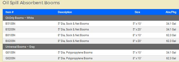 MBT absorbent booms are used to surround oil spills on the surface of water. They absorb and contain spilled hydrocarbons while repelling water. Pads, rolls, and sweeps are deployed in conjunction with booms for full clean-up.