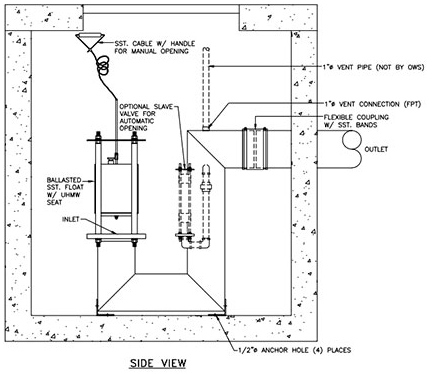 Slave Valve: Usually recommended when evaporation or leakage may occur causing the Oil Stop Valve (OSV) float to close due to lack of water. Adding this option to any of the above models will make the Oil Stop Valve (OSV) fully automatic.