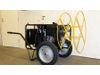 The LIP 400 is built in a wheel frame and is powered by a hydraulic power pack, or can be customized with an integral gasoline or diesel engine. The complete closure of the hose which is squeezed between a shoe and the track gives the pump its positive displacement action that prevents backflow and eliminates the need for check-valves when the pump is not running.