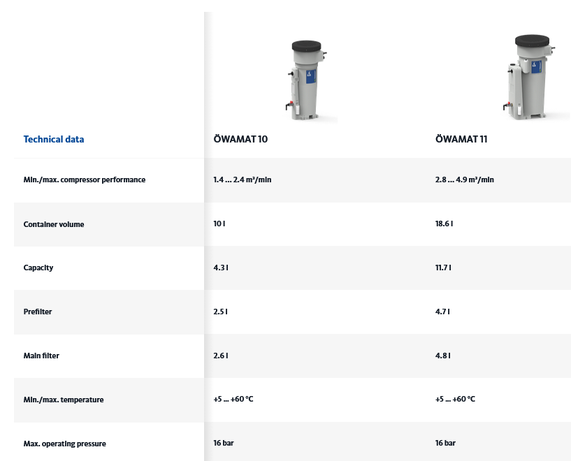Legislators demand that discharged condensate is processed safely and properly. We support this – with our sustainability policy and an extensive range of condensate processing systems. ÖWAMAT 10 and 11 oil-water separators combine environmental protection and economic efficiency and enable the environmentally friendly treatment of dispersed condensate directly at the point of origin. That is economical, efficient - and the cost-effective alternative.
