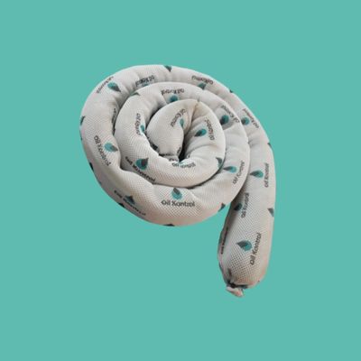 Barrier made with 100% 3D Polyester fabric, with UV protection to prolong its useful life outdoors, 10cm in diameter by 2.5 meters long, filled with 2.2KG of bio-absorbent collagen fibers, 100% organic, oleophilic, hydrophobic, flame retardant, harmless to the environment, with a specific weight of 0.20 g/cm3. Absorption capacity up to 15 liters.