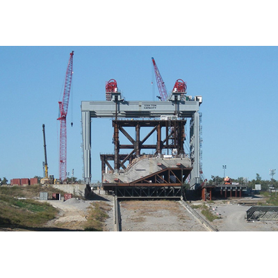Construction of the Oldsted Dam on the Ohio River involved lifting and placing 5,304 capacity crane in the riverbed to form the dam`s foundation. The United States Army Corps of Engineers worked with PAR Systems to design and build the world`s largest rolling gantry crane in order to achieve this task.