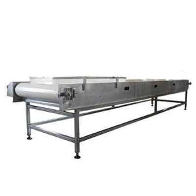 Conveyors are custom designed in a variety of widths and lengths for your configuration and application. Belting material choices include PVC fabric, plastics or wire mesh with sides or flights. The OLNEY Company manufactures conveyors for product transfer, inspection, dewatering, hopper feeds, elevating or flat.