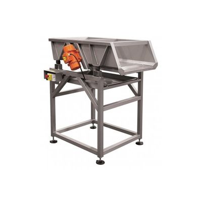 Vibrating table for dosage of whole or destemmed grape. Completely made of aisi 304 stainless steel, on adjustable legs. Complete with dripping grid, collection basin and electric panel.