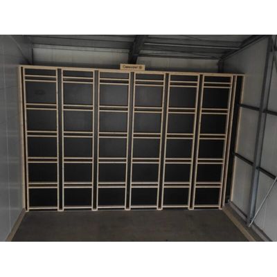 In a letterbox system the pallet openings of the boxes are used as air ducts. In the pressure wall, each pallet opening can be covered with a flap. As a result, you can control per row and per layer whether air flows through the duct. Therefore the letterbox system is highly flexible in use, making it suitable when there is plenty of diversity in your product. The letterbox system is frequently called a “drying wall”, and that is for a reason! The system has excellent drying performance. Keep in mind that the system is mainly suitable for smaller batches, because row lengths are limited to 8 to 10 boxes.