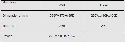 • Speed of water flow at hydraulic panel input, dm3/ min : 0.08-5
