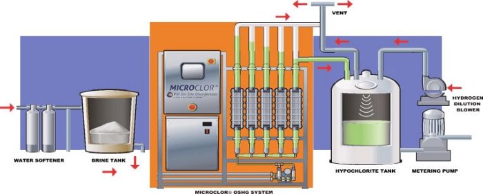 As concerns mount and regulations change regarding the safety and security of using chlorine gas for water disinfection, many utilities are choosing sodium hypochlorite (bleach) as a safer disinfection alternative. Once the decision to convert to a safer alternative has been made the question remains whether to purchase or produce sodium hypochlorite. Microclor OSHG is the right choice to meet your disinfection requirements. The items listed below are the most significant of the many benefits realized by upgrading to Microclor OSHG. We encourage you to contact the many utilities currently using Microclor OSHG for further evidence supporting the decision to purchase a Microclor OSHG.
