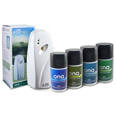 The ONA Mist Dispenser is a great way to control odors in small rooms and areas where the odor source is constant or repeated. Rooms such as bathrooms, entry or exit areas, pantries, workshops, and garbage collection areas that are approximately 6,000 cubic feet (170 sq. meters) are aptly serviced with an ONA Mist Dispenser - under normal airflow conditions. Larger areas are best controlled with one of our larger CFM dispensers such as the ONA Breeze or ONA Odorstop.