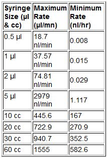 The smoothest microfluidic syringe pump on the market. Advance Per Step: 3.96190383 Nanometers. Holds 1 syringe up to 60 mL (140 mL partially filled). Infusion rates from 0.007 nL/hr (0.5 µL syringe) to 2371 µL/min (140 mL syringe)