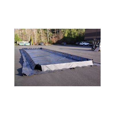 One Step Spill Containment Berm Features: To set up the One Step Spill Berm just unfold this no loose parts berm and lift the walls into place. Walls are supported by a sturdy "A" frame construction. Deploys instantly, easy to store, no straps or trip hazards and quick setup/breakdown time. Walls go up and down individually in SECONDS. One Step Spill Berm wall heights can be fabricated from 6" up to 24" high. To move it, simply, collapse walls and fold it up. Optional drains may be added. Be secure with our 10-year warranty on seams and workmanship and 10 years pro-rated on cracking, UV and mildew*. All Sizes available and call or contact us for custom sizes without custom prices!. IPI Berms are now in use all over the world by military, government and industrial users. No exposed screws or screws of any kind. Overlap Seams. Lip of berm comes with grommets for stake down.