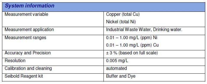 Basic Information: This process analyser was developed and built for industrial waste water and drinking water Industry. The main advantages are the combined measurement in one measurement step and the use of non toxic and non hazardous reagents.