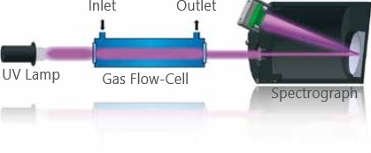 - The gas flow cell has two quartz windows to transmit the UV light throught the measured gas. The standard path length of the flow cell is 240 mm.
