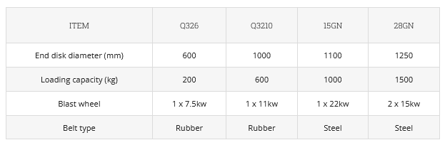 Following lists general specifications of reference tumble belt shot blasting machine.