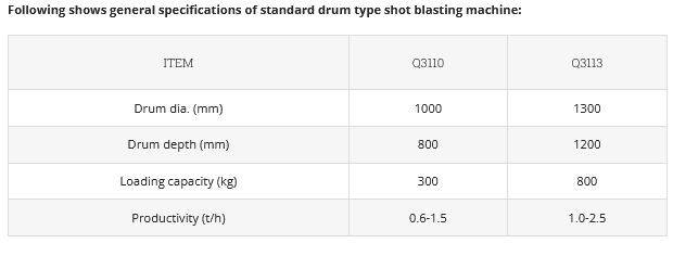 Drum type shot blasting machine is suitable to process small tumble-proof workpiece.