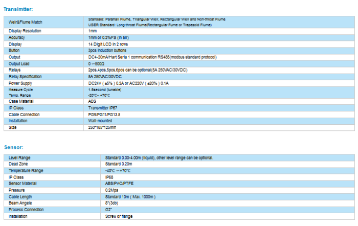 • Match with various weir and flume, Parshall flume, Right-angle triangle weir, rectangular weir, groove, and throat channel slot.