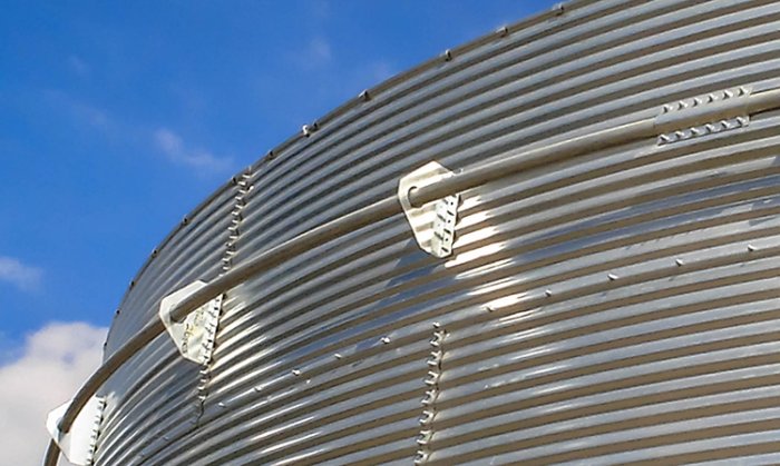 CorGal tanks are available without a roof for those applications that do not need to protect the stored product from the sun. The no roof or open top tank consists of corrugated galvanized steel wall sheets only. The no roof tanks are equipped with a geotextile preliner and a flexible membrane main liner for water containment and these tanks are pre-engineered for water containment only. An exterior wind support ring is provided for 21′ diameter models and larger.