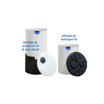 Open Top – Vertical Batch Tanks are designed for indoor applications. Perfect for batch chemical/mixer mounting systems as well as many other applications. All tanks feature 8″ lids and one standard fitting. Both polyethylene and metal stands (when used with Vertical Stand Adaptor) are available for the Vertical Batch Tanks. Open Top – Vertical Batch Tanks come standard with bolt-on lid, a polyethylene hinged lid option is also available. Tanks are manufactured from medium-density polyethylene with U.V. inhibitors and are designed for the containment of liquids up to 2.0 specific gravity. Tank walls are translucent for level viewing and equipped with liter and gallon indicators.