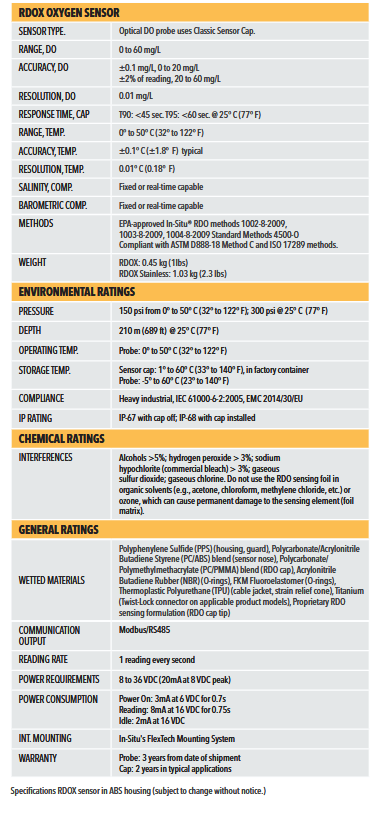 - Automatic setup—the RDOX Cap is pre-loaded with factory calibration coefficients, serial number and manufacture date.