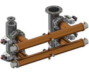 The UV System consists of two manifolds with one or more UV chambers installed in parallel. The UV chambers are fabricated from a single CuNi Fer 90/10 DN150 pipe with a wall thickness of 3mm. Each chamber can treat up to 167 m³/h ballast water using a high-power UV lamp. The maximum effect for each UV-lamp is 35kW.
