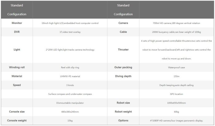 Orca A ROV is widely used in the research and education,underwater archaeology,oceanography,river and sea search,dams inspection,oil and gas rig work,aquaculture and homeland security operations,etc.The whole set is packed in a safe case which is easy to carry.