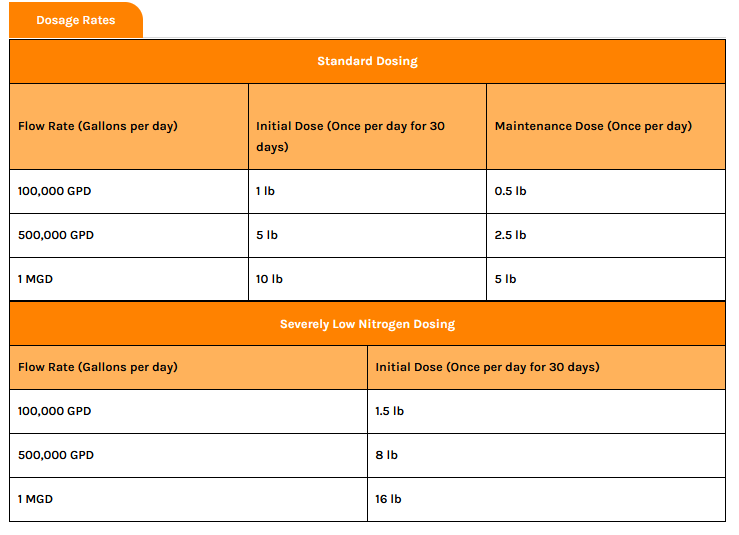 With consistent dosing, operators can expect improved clarifier performance, more compact sludge, and better overall system efficiency. It is available in a 50 lb bag and comes with flexible dosing options for both standard and severely nitrogen-deficient systems.