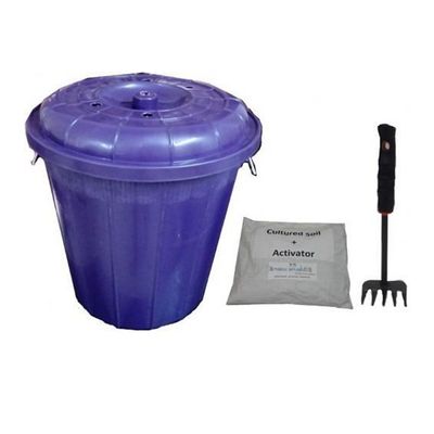 - It is a Plastic Bin with 30 Litre capacity and can hold wet waste of family having strength of average 5 people for more than 4-5 months. It contains microbe and concentrated culture along with growth hormone. Microbes helps to degrade the waste and concentrated culture will boost the cycle of composting. Growth hormones will increase microbes longevity.