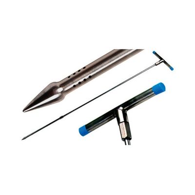 Easily and economically sample soil gas vapors at shallow depths for preliminary testing. The AMS "original" gas vapor probe can take vapor samples in soils to depths of 12` depending on soil conditions. This kit is an excellent choice for shallow gas vapor sampling in soft soil. The kit includes a base section with a probe tip and soil gas access holes above. An included liner rod with tip is placed inside the base section. AMS also offers the patented dedicated gas vapor tip and the AMS Retract-A-Tip for soil gas sampling as well as shallow groundwater sampling.