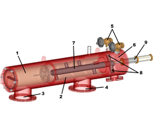 As a result, pressure drops in the hydraulic motor chamber 6 and dirt collector assembly 7. The pressure drop creates a backflush stream, which sucks the dirt off the screen, similar to a vacuum cleaner. The backwash water is carried through the collector and ejected out of the holes in the hydraulic motor 8.