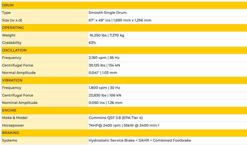 The SV414ND smooth drum vibratory compactor offers unparalleled versatility with its unique gear-driven oscillation. Operators can effortlessly switch between traditional vibration for optimal density or oscillation, making it ideal for no-vibe jobs over utilities, near historic structures, or sensitive equipment. Weighing just over 8 tons with a 67-inch drum, this powerful roller efficiently handles medium production compaction across various soil types. Powered by a dependable 74 HP Cummins diesel engine, the SV414ND ensures consistent power and confident operation on slopes up to approximately 32.2 degrees (63% grade), perfect for challenging embankments and sloped site preparations.