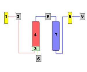 Air from the integral compressor enters the generator via a 0.01- micron filter [1] that removes contaminants and bulk moisture via an integrated auto drain. When the control system assesses that more nitrogen is required, solenoid valve [2] is opened and the pressure is allowed to build in the column [4] containing Carbon Molecular Sieve (CMS) and a residue moisture catcher [3]. This sieve adsorbs the oxygen and leaves the dry nitrogen free to flow into the reservoir [7]. After this point, the Nitrogen is allowed to flow to the application via another 0.01-micron filter [8] and pressure and flow regulators [9].