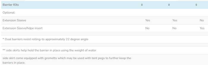 Our newest barrier features an attached apron which provides superior protection against water seepage, and because it is attached to the bottom of the barrier it effectively doubles the thickness of the barrier floor thus providing superior protection against damage by abrasion.