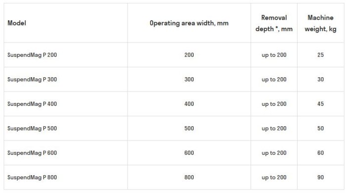 ERGA SuspendMag P budget overband magnetic separator with mechanical cleaning ensures qualitative removal of small strongly magnetic inclusions (clips, nails, nuts, etc.) in bulk material from distance up to 200mm.
