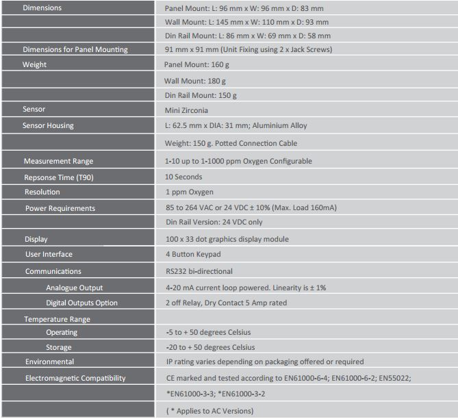 • Low Cost Oxygen % or ppm Analyser