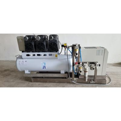 After the filtration from the compressor and air treatment, nitrogen is removed from the air, so pure oxygen of between 80 and 95% can be achieved. These percentage numbers depend on the filter bed`, where the nitrogen is removed from the air. Each project has its unique calculations and that is what makes this system extraordinary. The oxygen is then stored in a stainless-steel buffer vessel.