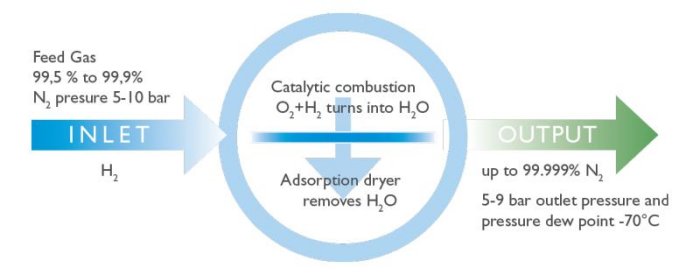Oxymat Purifier Action System (OPAS) is the Add-on technology, making the most of any Nitrogen generator. OPAS is the true Add-On technology for Nitrogen application requiring 1-100 ppm. OPAS can easily be integrated with already existing Nitrogen generation systems resulting in high purity Nitrogen at minimum costs.