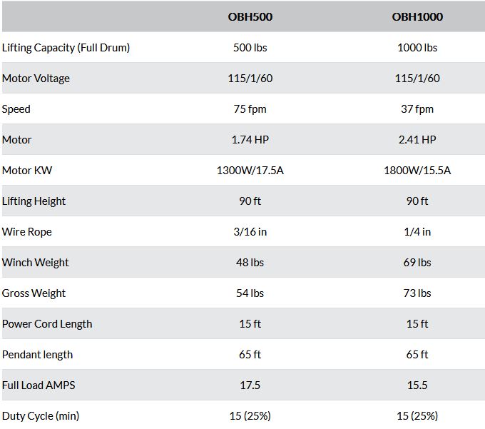OZ BUILDER - Model OBH500 and OBH1000 -Electric Hoists