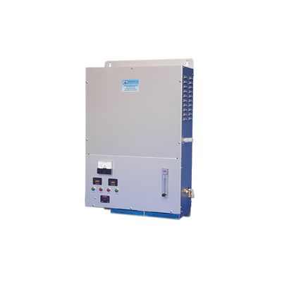 This wall mount corona discharge ozone generator is based on a patented generator module that features a robust ceramic dielectric that provides high performance and reliability. It can be ordered as air or water cooled and comes with a full set of features and options.. The system generates 20 gr/hr on 5.4 LPM of 92% oxygen. It comes with an integrated flow meter (0-20 LPM) and an ampere meter in a lightweight aluminum cabinet . A standard two year warranty is provided.