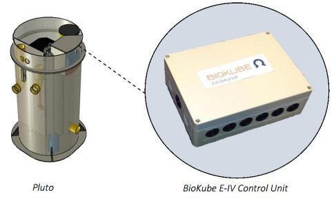 - All electrical component in the Pluto Unit; e.g. Blowers, pumps, UV Units , are integrated and connected to the BioKube E-IV control unit, from where the power is distributed and controlled.