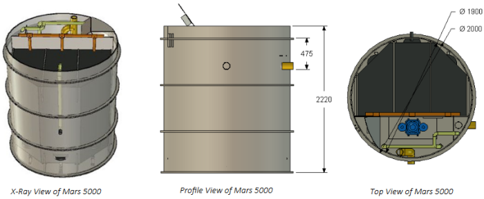 - In case of high ground water levels it is recommended to cast a buoyancy control concrete anchor around the bottom of the Mars plant.