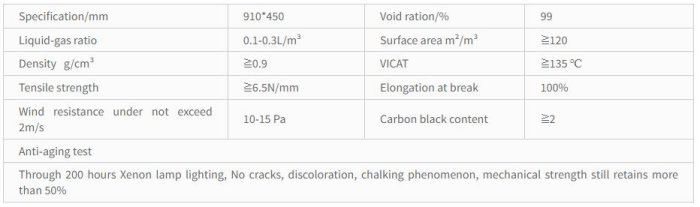 It is constructed by a series of plastic sheets assembled into a lattice structure, with its internals engineered to the geometry of honeycombs. This network structure provides a large contact area which allows even liquid distribution, augmenting liquid flow rate with minimum resistance. Its high surface area to volume ratio contributes to high mass transfer efficiency. Structured packing media is versatile and can be stacked into block-form, suitable for use in towers. Made of Polypropylene (PP) in colour black. Cooling Tower Fills Splash Fill Wet Net Filler Structure Packing grid.
