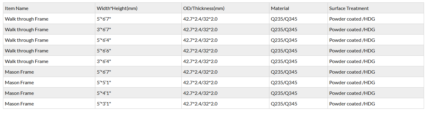 5 inch 6inch 4 feet Power coated american ladder frame scaffolding of Snappy Scaffold Frames, Walk Through Frame, Ladder Frame, Box Frame,Narrow Frame, Heavy Duty Scaffolding Shoring Frame with Frame System Components of Scaffolding Braces, Coupling Pins, Guard Rails, Goosers, Screw Jacks, U Head, Guard Rail Post.