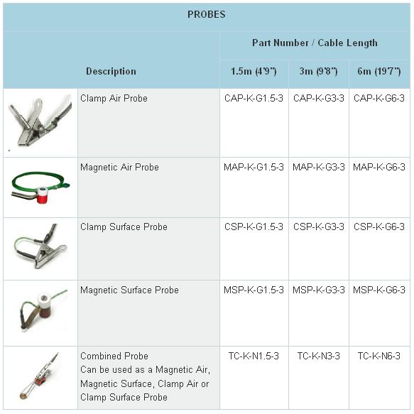 All probes have a continuous maximum temperature of 250ºC (428ºF).