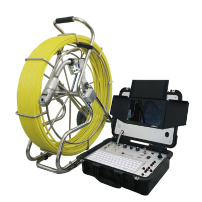 The P50B Pan & Tilt is a push rod camera system designed for inspecting various surfaces such as sewer systems, drains, pipe walls, vessels, and tanks. Its camera sensor is safeguarded by a robust sapphire lens that is resistant to scratches. Constructed from aluminum and stainless steel, the camera head has an IP68 waterproof rating, making it suitable for underwater inspections. Equipped with adjustable high-intensity LED lights, the system provides powerful illumination for clearer inspection visuals. The control unit features a 10-inch color monitor that enables on-site viewing of real-time inspection footage. Users can store inspection results, including videos and images, on a USB flash drive or memory card. The system supports pipe diameters ranging from 4 to 8 inches and uses a 700TVL, 720p auto-leveling camera head, offering a 180° pan and 360° tilt. The included cable reel is 196 feet long, with an optional upgrade to 393 feet, and features a manual fiberglass design.The P50B Pan & Tilt is a push camera that is suited for inspecting sewer, drains, vessels, pipe walls, and tanks. The camera sensor is protected by a durable, scratch-proof sapphire lens. The camera head is made of aluminum and stainless steel and is IP68 waterproof rated. The adjustable high-intensity LED lights provide intense illumination. The control unit is equipped with a 10″ color monitor screen. Inspection results can be saved as videos and images directly to a USB flash drive or a memory card to be viewed on-site.