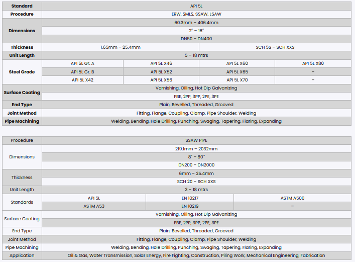 SSAW Pipe and LSAW Pipe are both SAW (submerged arc welded) pipe types often utilized for oil and gas transportation. The process through which they are welded distinguishes them. Steel coils are spirally welded, like a helix, in SSAW, such that the coil (strip) takes on the shape of a pipe. The welding of LSAW pipes is longitudinal, which means that steel (hot-rolled coil plate) is rolled into a pipe and the seam is longitudinally welded.