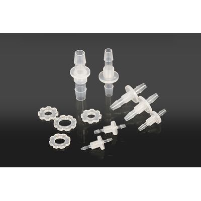 Panel mount bulkheads are made of medical-grade polypropylene and comprise two pieces of fittings, the main bulkhead part and the fixing stator. This tube fitting is widely used for connecting flexible tubing through metal, plastic, acrylic or wooden instrumental housing to transfer fluid or air from one side to another.