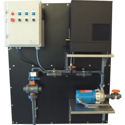 WRO3 Panel System: The WRO3 Panel System is a compact corona discharge ozone generation and application system designed to take up minimal space. The system is mounted against a wall and has a width of only 20". The system can include a pump and venturi to circulate the water being treated or air can be fed through the unit for aeration purposes. The system can be configured to provide up to 120 g/hr of ozone and take up minimal space. The system is complete with an air prep unit that generated an almost pure oxygen fed for the ozon generator. Can be fully automated and integrated into any process.