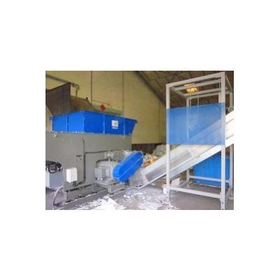 The paper waste is stored in a bunker in the corner of the plant. A wheel loader is used to fill the waste in to a hopper on top of the shredder and milling unit that reduces the paper to a suitable particle size.