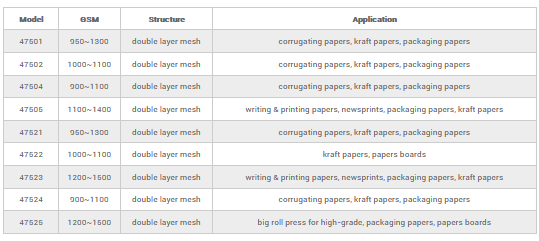 Double-layer BOM felts are used in press types such as groove press, vacuum suction press, multi-press, large-diameter nip-roll press to produce high-grade printing papers, news-prints, technical papers, packaging papers, high-grade paper boards, etc.