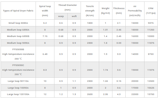 Dryer screen dries paper web after passing a press section by adhering the web to a steam-heated cylinder. In the dryer section of the paper machine, the paper sheet travels around large-diameter heated cylinders, remaining water is removed by evaporation. Spiral dryer fabrics are widely used in various industries as papermaking dryer fabrics, filter mesh belts, or dryer conveyor belts.
